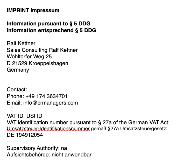 Liability for ContentThe content of our pages has been created with the utmost care. However, we cannot guarantee the accuracy, completeness, or timeliness of the content. As a service provider, we are responsible for our own content on these pages under general laws pursuant to § 7 (1) DDG. However, according to §§ 8 to 10 DDG, we are not obligated as a service provider to monitor transmitted or stored third-party information or to investigate circumstances that indicate illegal activity. Obligations to remove or block the use of information under general laws remain unaffected. Liability in this regard is only possible from the time we become aware of a specific legal violation. Upon becoming aware of such violations, we will remove the content immediately.